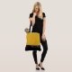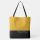 This lovely fashion forward tote bag shows the word "Maid of Honour" in white text colour over black with the upper tote bag in custom Mellow Yellow. Has plenty of room for personalised text. Graphics and text are on both sides of this tote bag. Black handle. Customise further or buy as shown.