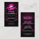 © 2012 Socialite Designs. An elegant makeup artist business card design with sensual pink lips and a luxurious banner for your text. The design also incorporates a soft background glow and a monogram on the back.