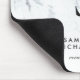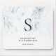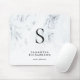 Be on brand while your at your desk with this chic mousepad. Featuring a subtle grey and white marble background, overlaid with your initial in black and your name and role/business name below. Matches other items in this branded suite.
