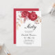 Honour a special woman with this elegant and feminine Birthday party invitation, featuring a beautiful maroon rose floral design with greenery accents. Each text is customisable for your needs.