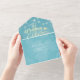 Chic Mason Jar String Light Blue Gold Wedding RSVP All In One Invitation