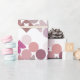 Beautiful contemporary mauve taupe, violet purple, coral red and blush pink coloured geometric circles and half circles pattern on a crisp white background. Elegant, stylish and eclectic minimalism design for the artistic hip trendsetter, vintage retro art style or abstract digital geometric motif lover. Available on a variety of modern crafts and office products. Such as wrapping and tissue paper, gift tags, bags and favour boxes, stickers, ribbons, stationery and envelopes.