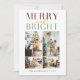 An elegant and chic holiday card featuring a script lettering saying “merry and bright” and four customisable photos at the front with watercolor cherries and leaves pattern at the back. Perfect as a personalised Christmas holiday card to send to your family, friends and loved ones.