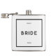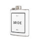 Chic and minimal French, Parisian inspired, monochrome black and white personalised bride hip flask. Perfect for so many occasions... a thoughtful gift for a bride or bride-to-be on her bachelorette party, bridal shower party, wedding party, engagement or honeymoon. Customise with bride's name and wedding destination in a chic minimal sans serif font. Designed to match our Chic Minimal French Black & White Wedding Collection.