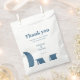 Create lasting impressions with our Elegant Wedding Favour Bag. The pristine white bag serves as a canvas for a minimalist pastel blue design. Express your gratitude with a 'Thank You' at the top, accompanied by heartfelt words, the names of the bride and groom, and the memorable date. This bag adds a touch of sophistication to your tokens of appreciation.