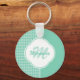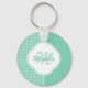 Chic Mint Green Houndstooth With Monogram and Name Key Ring