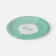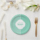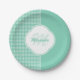 Chic Mint Green Houndstooth With Monogram and Name Paper Plate