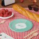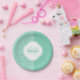 Chic two-toned mint green paper plates with a houndstooth pattern in vertical stripes. Personalise this contemporary design in a trendy shade of pastel green by adding the name and monogram initials of the fashionable young woman.