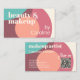 Beautiful artistic makeup artist business card. With contemporary dark blush pink, mauve taupe, light tangerine orange and mint teal green coloured round circles pattern on an ivory off-white background combined with a modern retro and minimalist font. Click on 'Personalise' to find the template ready to be customised with your unique business name, profession and contact information, text and QR code of your choice. This particular pretty and unique design was made for those who like bright colourful pastels and sophisticated classic geometric abstract designs.