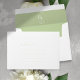 Lovely crisp white wedding envelope with green and pink elements to match with other stationary in the collection. This template features a contemorary set of fonts in a light green colour. The inside of the envelope matches the liht green text. Couple initials in white are framed by a delicate floral border on the inside. This item is part of a wedding collection suite which includes a crafted selection of elegant and chic stationary to match.