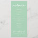 This soft mint green wedding dinner menu features chic white typography for a sweet spring outdoor ceremony. Simple and elegant script on tranquil solid pastel green menus for a garden reception.