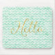 Chic Mint Watercolor Chevron Stripes Gold Hello Mouse Mat