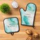 Chic Mint White Gold Bridal Shower Oven Mitt & Pot Holder Set