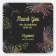 Modern colourful fireworks black birthday thank you sticker with a fireworks background.