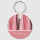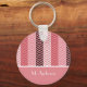 Chic Modern Pink Chevron Stripes With Name Key Ring