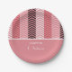 Chic Modern Pink Chevron Stripes With Name Paper Plate