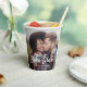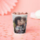 Add an elegant touch to bridal shower decorations with chic modern custom 2 photo paper cups. The picture and all wording on this template are simple to personalise for a couple's wedding shower, engagement party or other event. (IMAGE PLACEMENT TIP: An easy way to position a photo exactly how you want is to crop it before uploading to the Zazzle website.) The stylish minimal black and white design features bold brushed script calligraphy, classic vintage art deco typography and two pictures of the engaged couple. Congratulations to the bride!