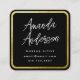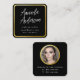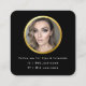 This modern and chic business card design features a black background with faux gold foil accents, your photo, and social media info on the front. On the back there is the same black background with faux gold foil accents, white script and simple typography. The text colours can be customised by using the editing tool. This design makes a chic statement and fabulous impression for your growing business. This design would be perfect for many types of creative businesses because it is simple yet elegant and modern.