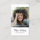 Modern and professional photography business cards featuring your photo in a simple white frame with trendy minimalist script typography. Add your contact information to the back. This stylish design includes three social media icons and a field for your username.