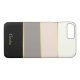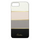 Cover your phone in a fashionable case featuring chic modern stripes in black, grey, blush pink and creamy eggshell white. Thin faux-gold lines separate the colours in designer style. Personalise with your name, monogram or other desired text. You can also delete the sample name shown if you prefer the case without any text.