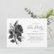 Modern and feminine botanical tea party invitation. It features black watercolour rose and greenery. Personalise this minimalist floral invitation by adding your own tea party details. This black rose invitation is perfect for modern-theme and garden tea parties.