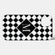 Chic diagonal black and white chequered pattern features your monogram in a large black diamond with a white border. Add your initial in the sidebar. Other case styles and models available in the sidebar.