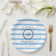 Chic Monogram Blue Stripes Family Beach House Paper Plate