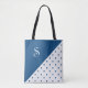 Chic Monogram Blue White Polka Dot Geometric Tote Bag