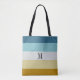 Chic Monogram Blue Yellow White Leather Stripe Tote Bag