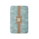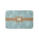 This chic botanical monogram design pattern features geometric shapes in teal, brown and very light green.
