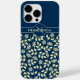 Chic Monogram Custom Name Leaves Daisies Blue Case-Mate iPhone Case