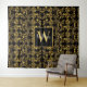 chic Monogram Gold Floral print pattern on black Tapestry