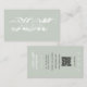 A beautiful white and sage green chic monogram initials design and your QR Code. This elegant business card is ideal for all types of professions. A simple and professional way to introduce your business. Customize the social media icons in this design to suit your business needs. Personalize your details to create your own unique monogrammed business card.