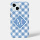 Chic Monogram Light Blue White Gingham Check Case-Mate iPhone Case