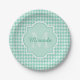 Chic Monogram Mint Green Houndstooth With Name Paper Plate