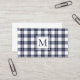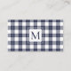 Chic Monogram Navy Blue and White Plaid Pattern Business Card
