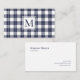 Easily add your monogram initial over a chic navy blue and white plaid pattern. On the professional business card back, add your name, and customise the job title/speciality/company, website, and contact information. Perfect for a consultant or other professions.