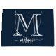 Chic Monogram Navy Blue White Large Gift Bag. Perfect for parties and celebrations such as wedding, bridal shower, birthday, Christmas and much more.