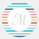 Chic Monogram Pastel Rainbow Horizontal Stripes Classic Round Sticker