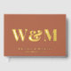 This chic and elegant terracotta wedding guest book features gold foil, your monogram initials in large classic serif typography, your names and your wedding date. You can personalise it with your photo on the back and a title on the spine.
