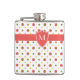 A chic Hip Flask to personalize, to personalize with your Monogram or Initials, with a pattern of Red, Green and Yellow Polka Dots on a White Background. Part of the Posh & Painterly 'Rangoli' collection, this pattern can be adjusted to fit any Flask.