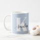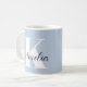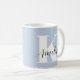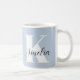 Personalised light blue mug featuring your monogram initial in modern large white typography and your name in a stylish signature script.