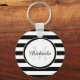 A chic black and white large stripes basic keychain. Personalise this dressy pattern by adding your name and monogrammed initial. This modish monogram design is part of the Black Trinkets Summer Colour Collection.