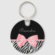 Chic Name Zebra Print Soft Girly Light Pink Ribbon Key Ring