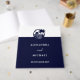 Capture cherished memories of your special day with this personalised coastal wedding guest book, featuring a crisp graphic design of a dark navy blue palm tree, the rising sun over the ocean, and peaceful birds framed in a navy circle. The elegant artwork is set against a chic navy and white stripes background, creating a timeless palm tree wedding aesthetic perfect for a sea, tropical, beach wedding, or summer celebration. Designed with elegant white typography and calligraphy script font, this stylish keepsake adds a sophisticated touch to your wedding décor while offering guests a beautiful place to leave their heartfelt messages.