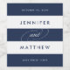 Modern and slightly nautical in bold navy blue and white stripes, these wedding wine labels are perfect for your reception tables, favours or welcome bags. Design features your names in modern lettering flanked by your wedding date and wine varietal or other information of your choice.