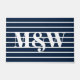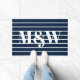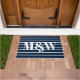 Modern chic dark navy blue and white stripes personalised custom couple monogram initials elegant, nautical Doormat