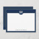 Chic Navy Blue Geometric Modern Monogram Note Card