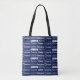 Modern navy blue name collage allover tote bag decorated in nine different fonts customized with your name. Chic custom gift with cool typography in cursive text.