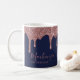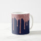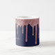 Chic Navy Blue Rose Gold Glitter Sparkle Drips Coffee Mug